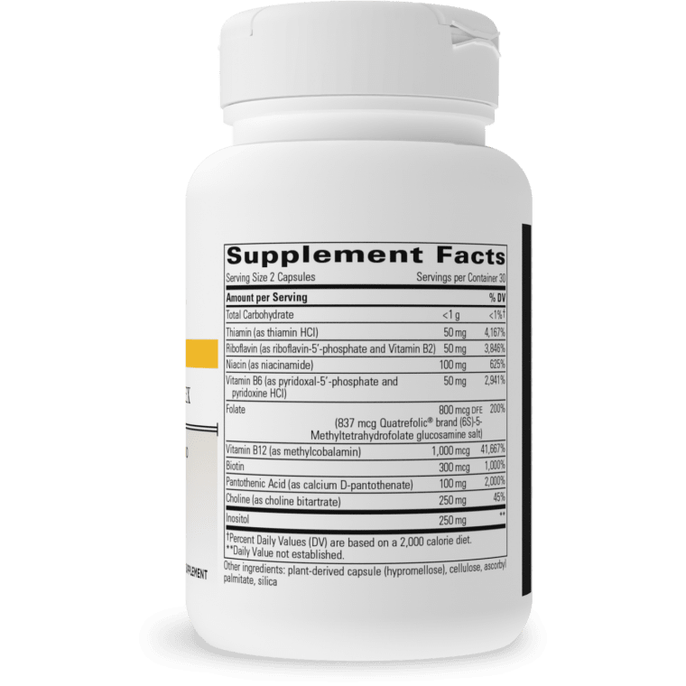 Active B-Complex features a potent blend containing the active forms of Vitamins B2, B6, B12, as well as Quatrefolic®-branded methylfolate (the bioactive form of folate). Free from top 8 allergens.Optimal folate and B vitamin intakes are associated with healthy neurological function as well as cardiovascular support.*1,2 Each B-vitamin exists in multiple forms, often referred to as vitamers. Active forms of vitamers are those that can be directly utilized by the body immediately.