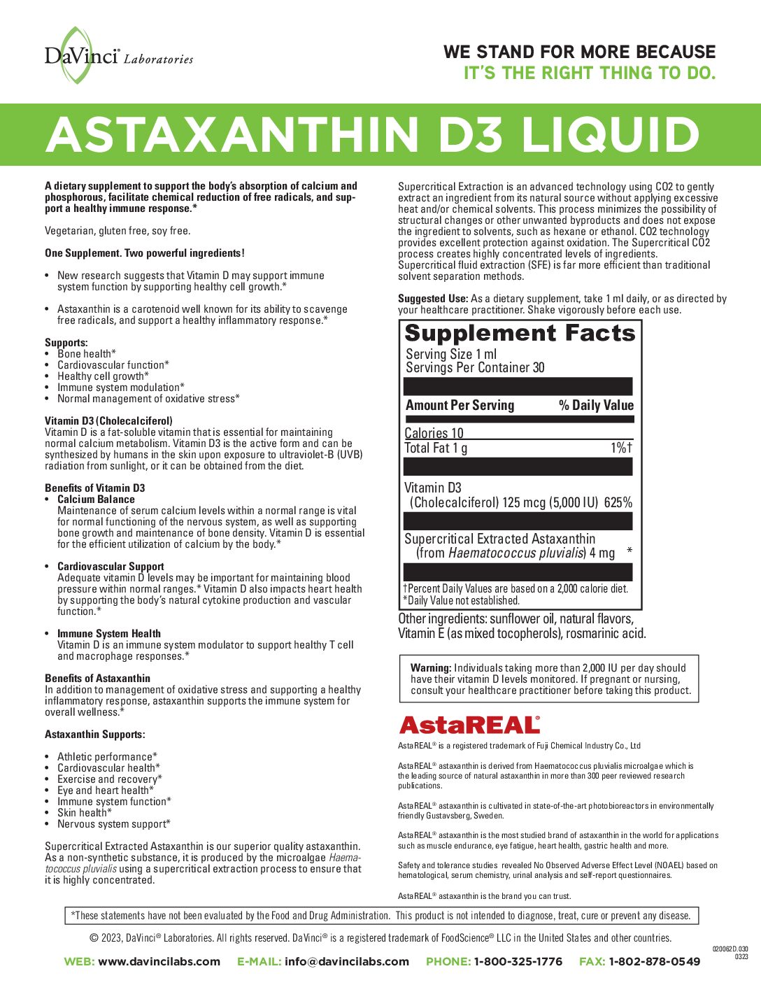 Astaxanthin D3 Liquid 30 servings 020062D.030