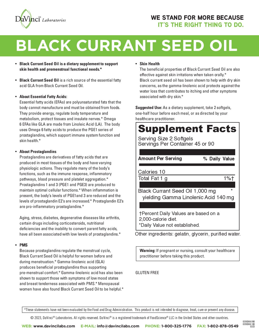 A dietary supplement to support skin and nerve health and premenstrual functional needs.* A rich source of the essential fatty acid GLA from organic Black Currant Seed Oil.