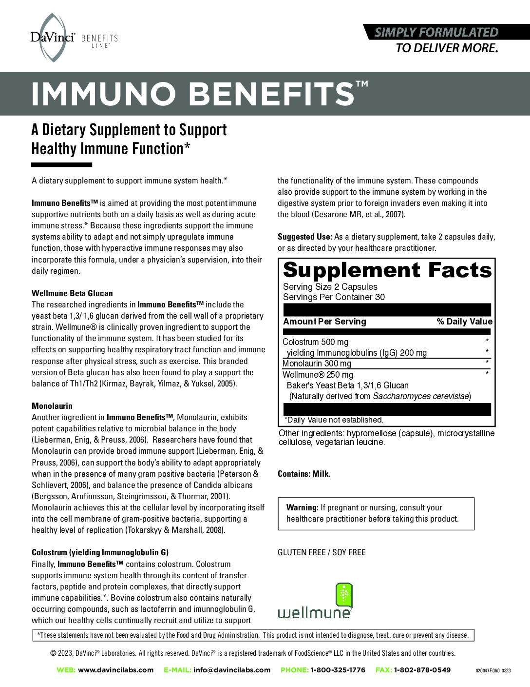 Immuno Benefits Suggested Use: As a dietary supplement, take 2 capsules daily, or as directed by your healthcare practitioner.