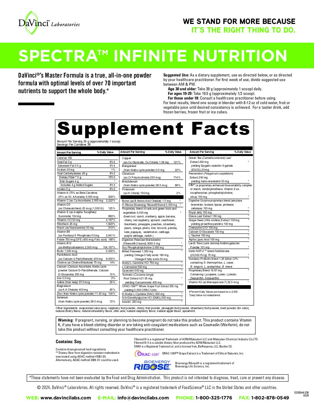 DaVinci’s Master Formula is a true, all-in-one powder formula with optimal levels of over 70 important nutrients to support the whole body.*