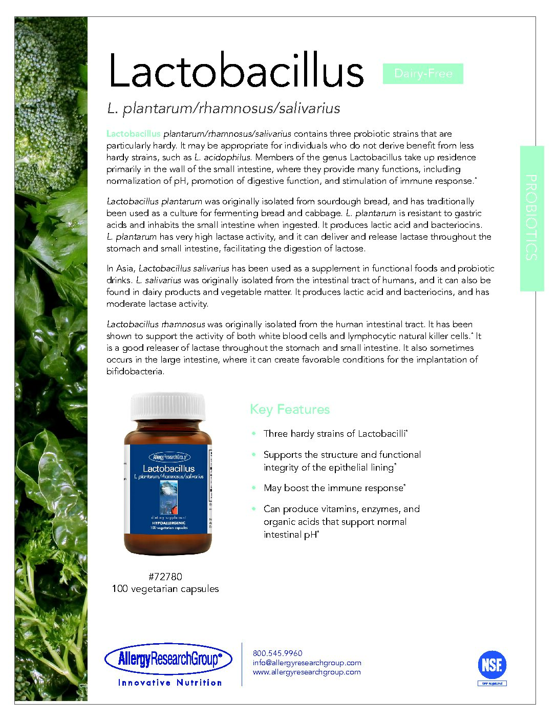 Lactobacillus plantarum/rhamnosus/ salivarius Non-Dairy Suggested Use: