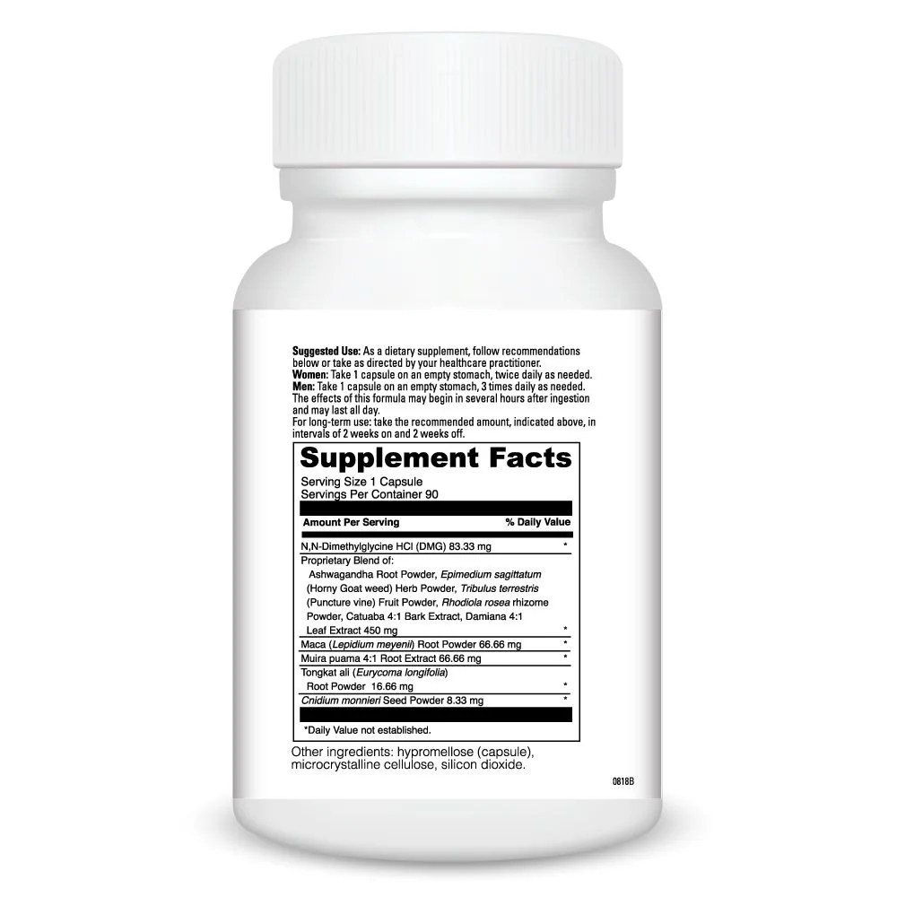 As a dietary supplement, follow recommendations below or take as directed by your healthcare practitioner. Women: Take 1 capsule on an empty stomach, twice daily as needed. Men: Take 1 capsule on an empty stomach, 3 times daily as needed. The effects of this formula may begin in several hours after ingestion and may last all day. For long-term use: take the recommended amount, indicated above, in intervals of 2 weeks on and 2 weeks off.