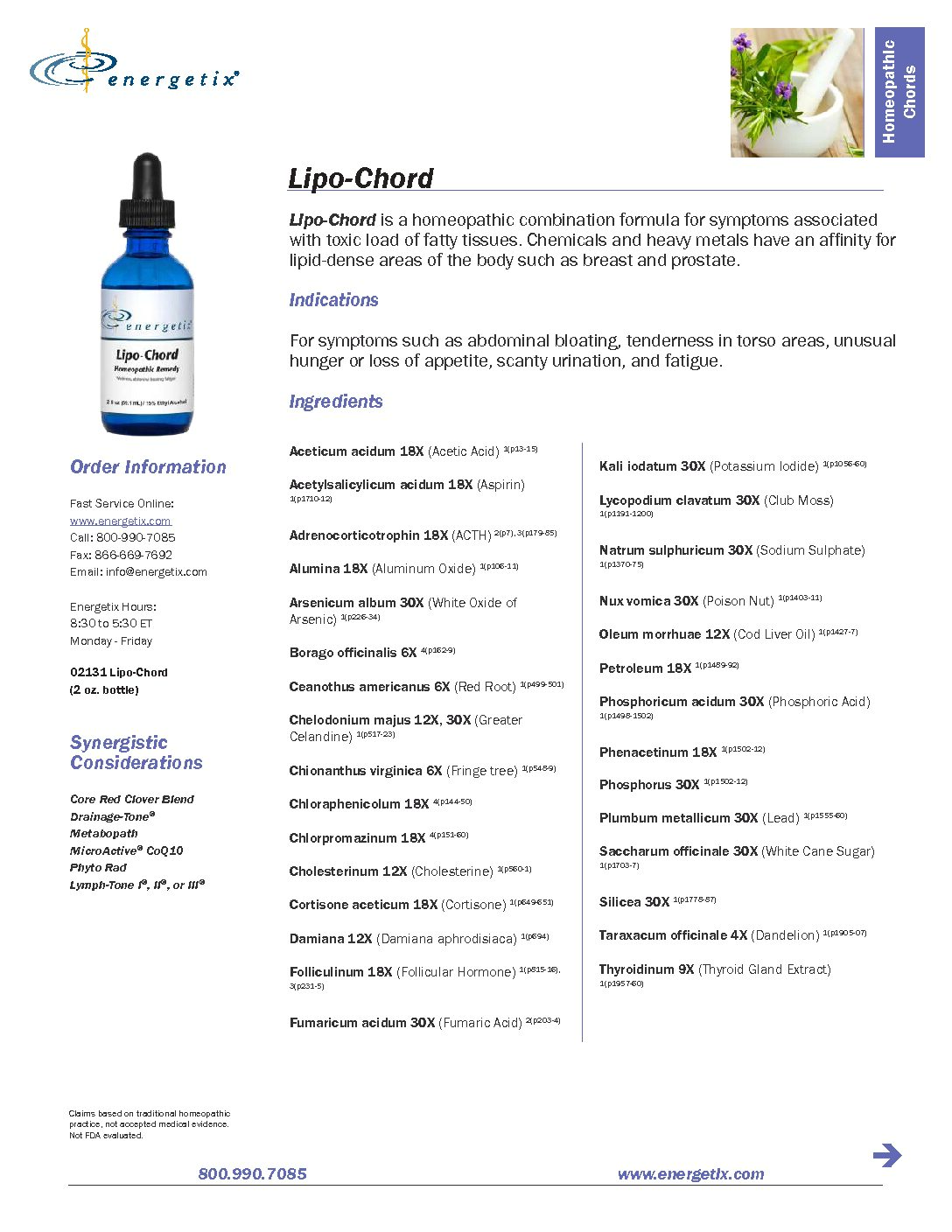 Lipo-Chord is a homeopathic combination formula for symptoms associated with toxic load of fatty tissues. Chemicals and heavy metals have an affinity for lipid-dense areas of the body such as breast and prostate.