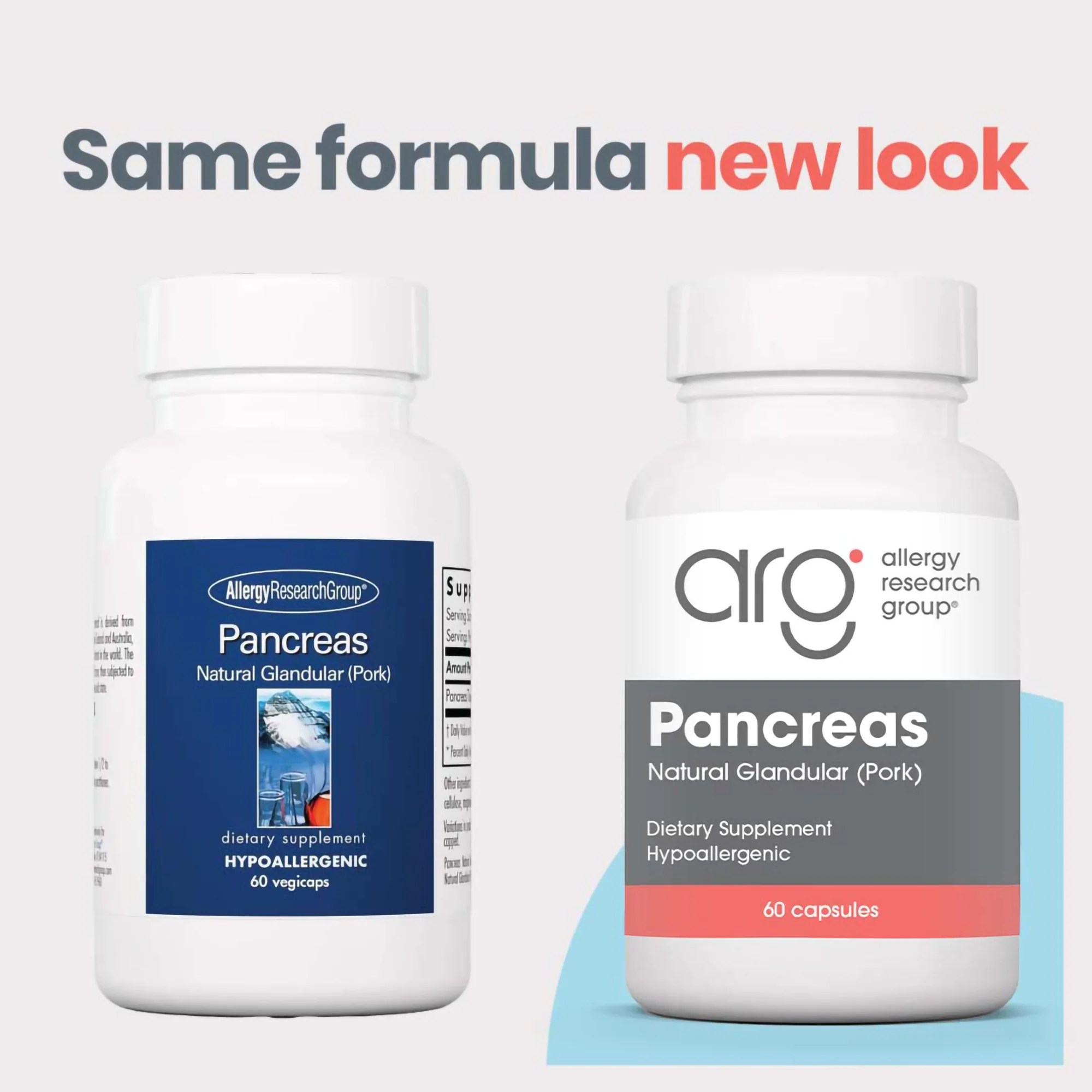 Same as Item #71620, except Pork Natural Glandular is used. Provides pancreas tissue. Properly prepared pancreas glandular substance contains amylase, protease, and lipase, as well as other digestive factors naturally occurring in the pancreas. Pancreas Natural Glandular products from pork and lamb can be used in a dietary rotation plan by those who are highly sensitive.