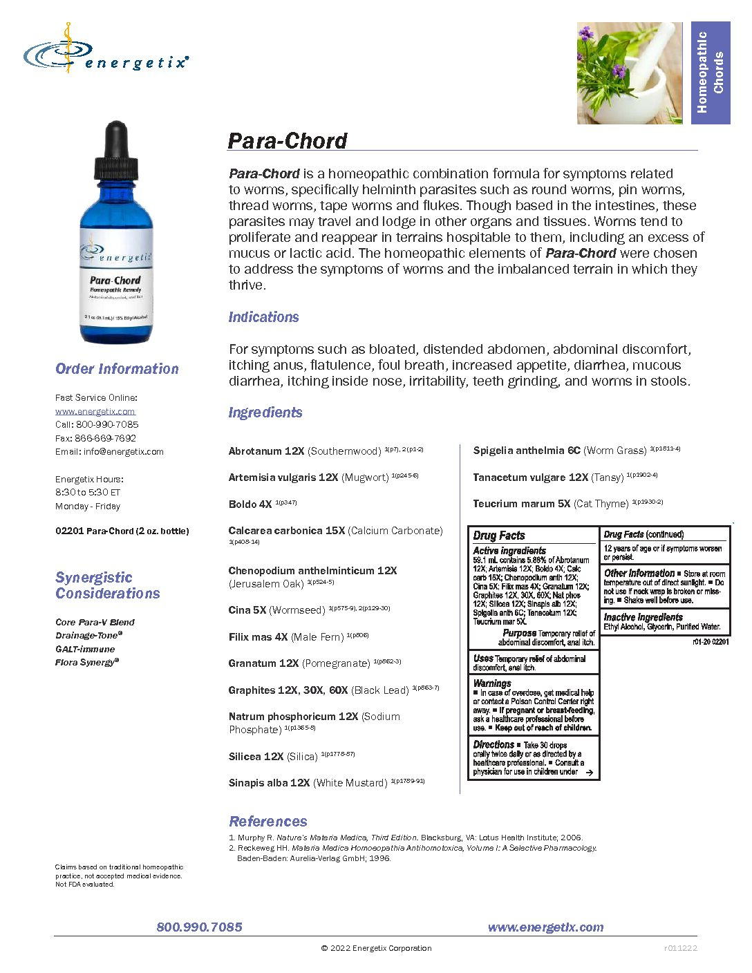 The homeopathic elements of Para-Chord were chosen to address the symptoms related to the presence of worms and the imbalanced terrain in which they thrive.