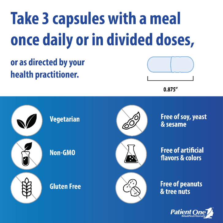 Take 3 capsules with a meal once daily or in divided doses as a dietary supplement, or as directed by your health practitioner. Store in a cool, dry place.