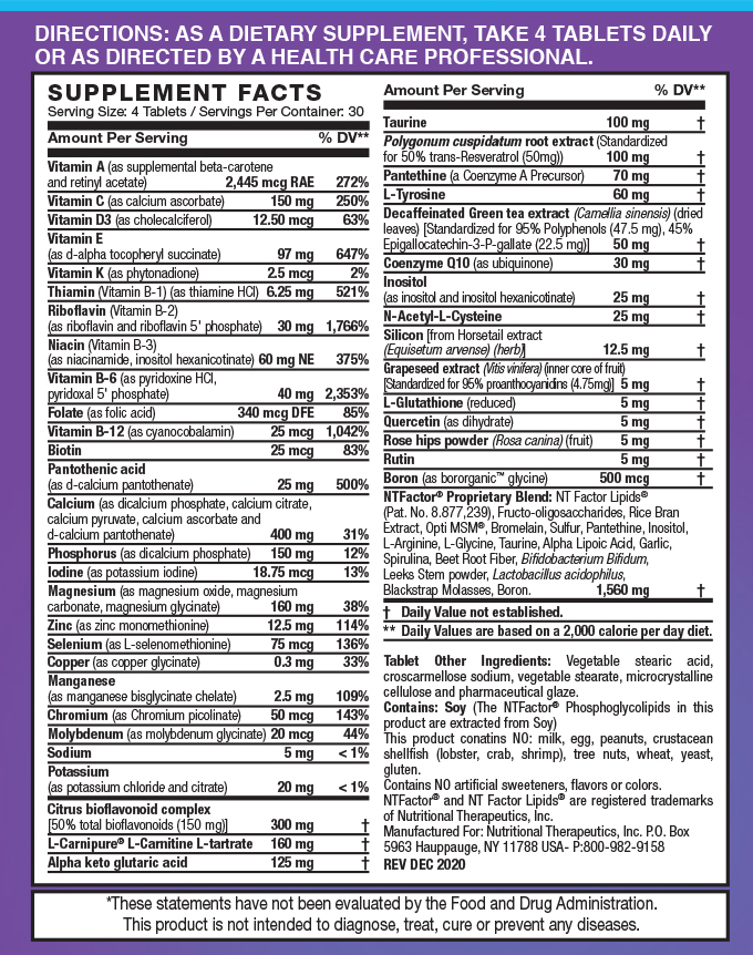 ProVites with NTFactor® is recommended to those whose natural ability to produce antioxidants have decreased through aging or exposure to a high level of toxins and stress, including exercise.