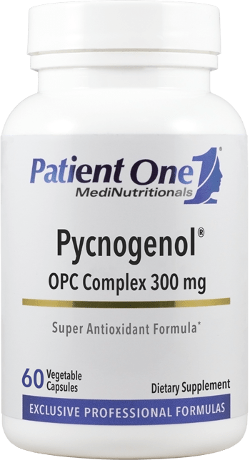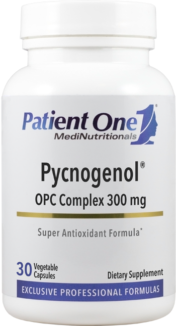Patient One Pycnogenol® OPC Complex 300mg is a potent super antioxidant formula comprised of multiple OPC’s (Oligomeric Proanthocyanidins) — powerful bioflavonoids that act as free radical scavengers in the human body and promote antioxidant activity and overall healthy aging. This highly absorbable formula features a network of clinically proven antioxidant compounds with a diverse spectrum of demonstrated health and wellness support functions: promoting heart health, normalizing blood vessel diameter, protecting retinal capillaries, promoting clear respiration, encouraging healthy inflammatory response, supporting youthful and healthy skin, and more.
