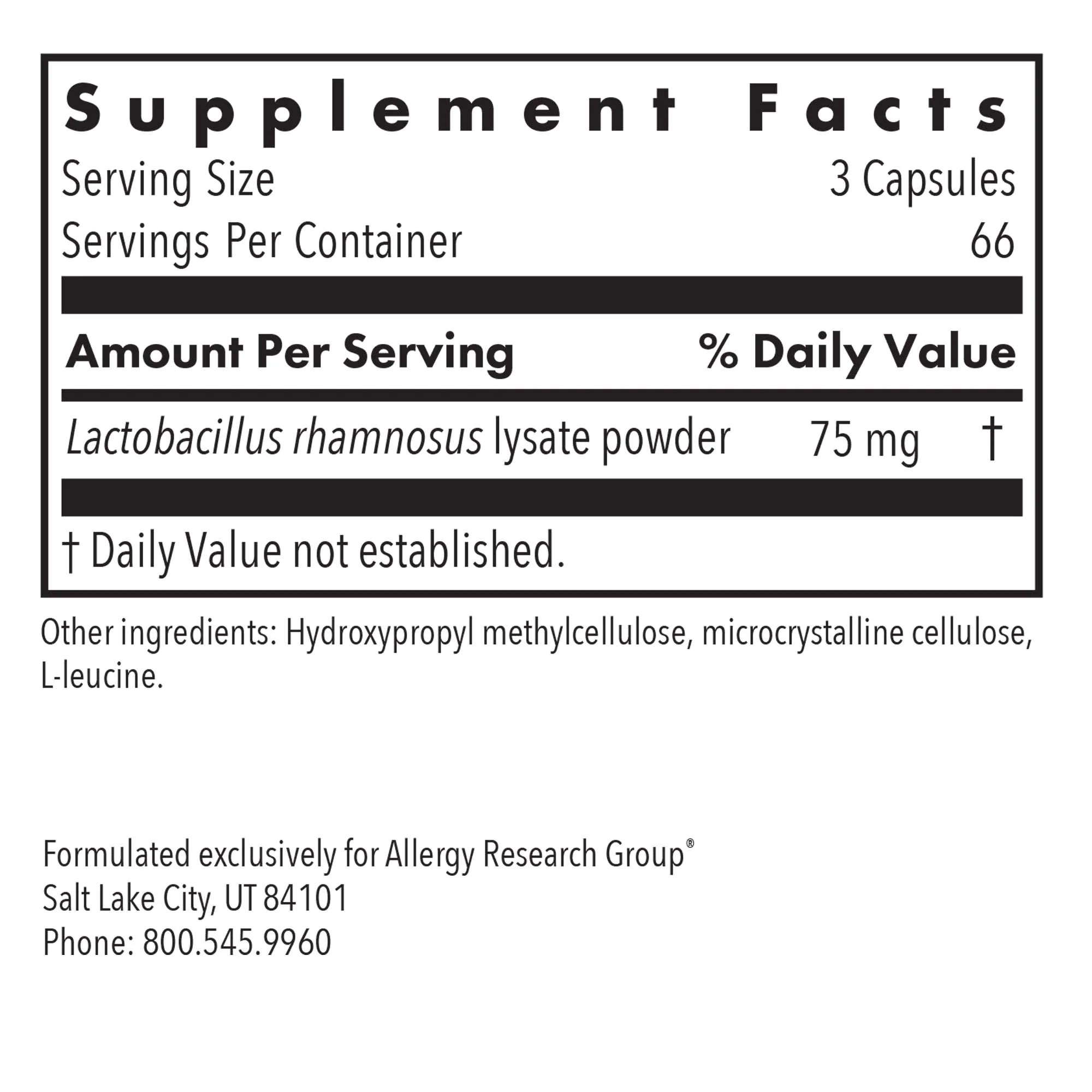 ImmuneBiotic Pro fka Russian Choice Immune Regulator contains Lactobacillus rhamnosus lysate powder. Lactobacillus cell wall fragments have shown significant immune system supporting properties.*